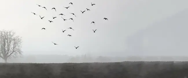 The birds toward the south begin to fly.