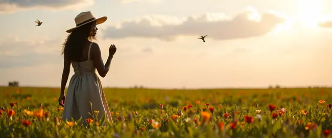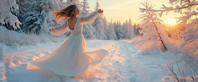 Her white summer dress sways with the gentle breeze