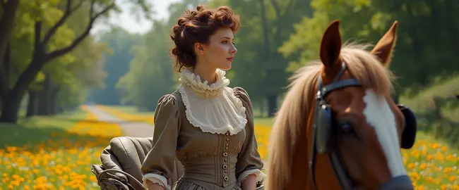 The term "chaise" in this poem refers to a Victorian-era, one-person horse-drawn carriage, while the word "fraise" pertains to a decorative ruff worn around the neck.