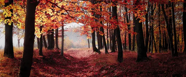 The leaves of wizened trees begin to dye