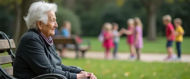 The aged man observes the child,